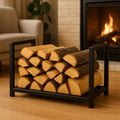 Stojak na drewno kominkowe Loftivo to połączenie funkcjonalności i prostej, loftowej formy. Konstrukcja została zaprojektowana tak, aby stabilnie przechowywać drewno opałowe, jednocześnie porządkując przestrzeń przy kominku.