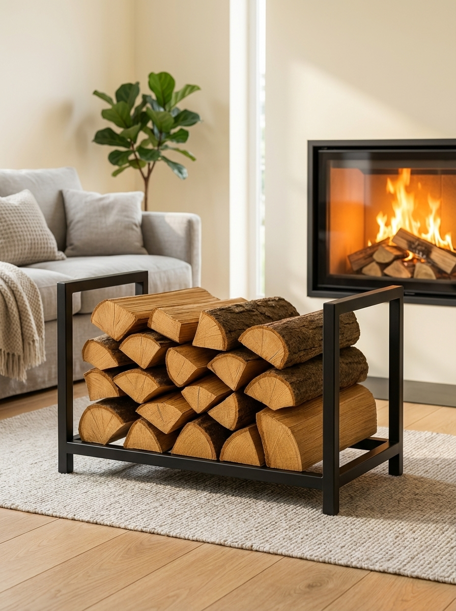 Stojak na drewno kominkowe Loftivo to połączenie funkcjonalności i prostej, loftowej formy. Konstrukcja została zaprojektowana tak, aby stabilnie przechowywać drewno opałowe, jednocześnie porządkując przestrzeń przy kominku.